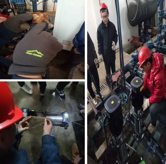 本月18日,經(jīng)站長上報,鐵五中熱力站兩臺補水泵全都補水效率低,無法正常補水。檢修接到通知后到現(xiàn)場查看,隨后設備部帶電工也趕到現(xiàn)場了解情況。經(jīng)過電工檢查發(fā)現(xiàn)不是參數(shù)設置問題,暫時懷疑是泵體內(nèi)部出現(xiàn)堵塞從而導致無法正常補水。為不影響周邊群眾取暖,從火車站調(diào)用一臺同型號補水泵安裝。整體拆泵查看管道及水泵進水口是否有堵塞情況時發(fā)現(xiàn)兩臺補水泵入口排污閥全部被堵死,這是導致補水泵不能正常運行的直接原因,在清理完重新安裝后兩臺泵全部恢復正常。