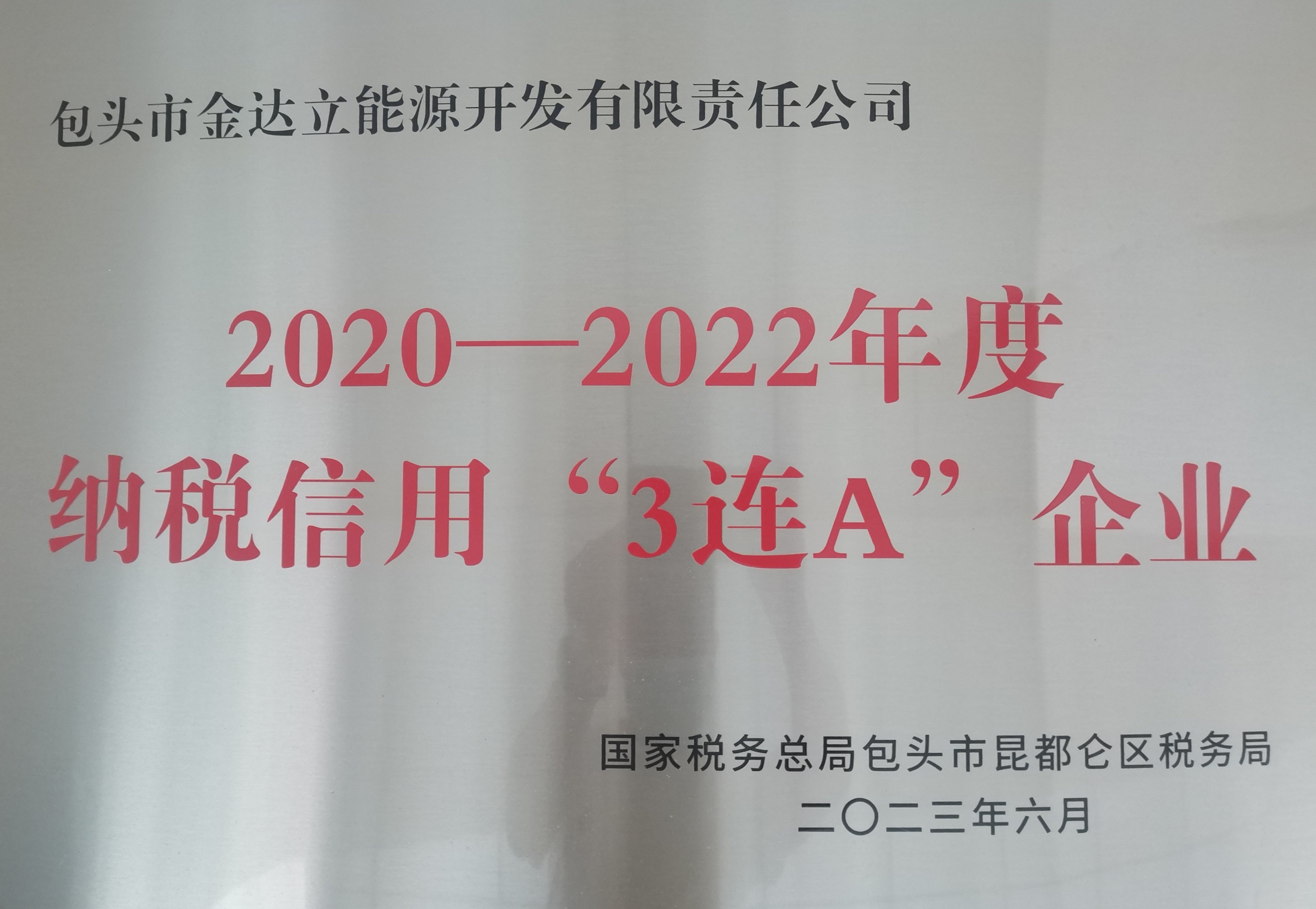 近期我公司取得了一項(xiàng)重要榮譽(yù)!我們很自豪地宣布,作為一家納稅廉潔、合規(guī)經(jīng)營的企業(yè),我們被國家稅務(wù)局包頭市昆都侖區(qū)稅務(wù)局授予“2020-2022年度納稅信用‘3連A’企業(yè)”!