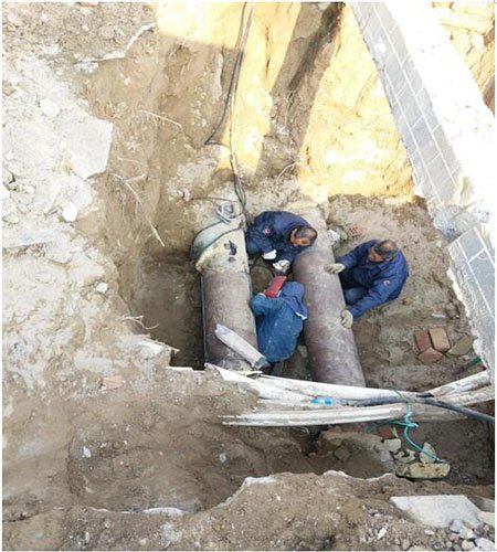 經(jīng)過(guò)一天一夜的連續(xù)搶修工作,成功的將一號(hào)公館和運(yùn)管兩處問(wèn)題管線全部更換。一號(hào)公館供水管線更換完畢取出后發(fā)現(xiàn)已經(jīng)銹蝕相當(dāng)嚴(yán)重,壁厚不足1mm,管壁密密麻麻全是砂眼。31日搶修隊(duì)伍準(zhǔn)備對(duì)作業(yè)面進(jìn)行保溫、回填工作時(shí)發(fā)現(xiàn)右側(cè)回水管路也已經(jīng)被腐蝕。經(jīng)過(guò)測(cè)量管壁厚度無(wú)法繼續(xù)正常安全運(yùn)行。公司領(lǐng)導(dǎo)到現(xiàn)場(chǎng)查看后決定對(duì)其隱患處包裹新管材焊接,31日晚22:00結(jié)束工作,恢復(fù)供熱。