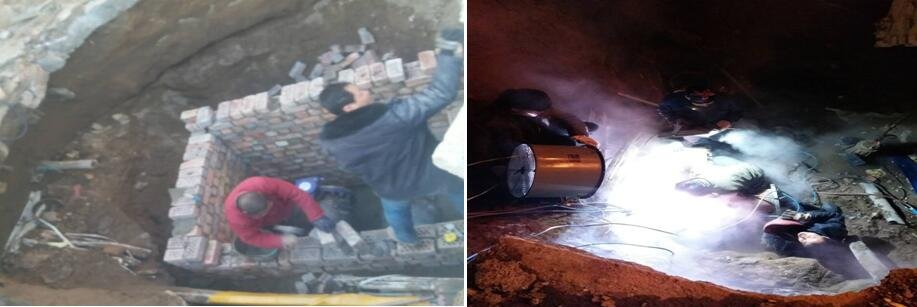 次日放水完畢后,搶修人員抓緊時(shí)間對(duì)所漏管線回水管道進(jìn)行切割、重新焊接并安裝閥門。由于擔(dān)心旁邊供水管路也存在腐蝕跑漏隱患,對(duì)供水管路同時(shí)進(jìn)行更換。整整連續(xù)工作了三天兩夜后終于對(duì)兩處管路閥門安裝完畢。此次搶修任務(wù)重、難度大、條件惡略,在如此高難度的環(huán)境下?lián)屝奕藛T依然順利的完成了任務(wù)。