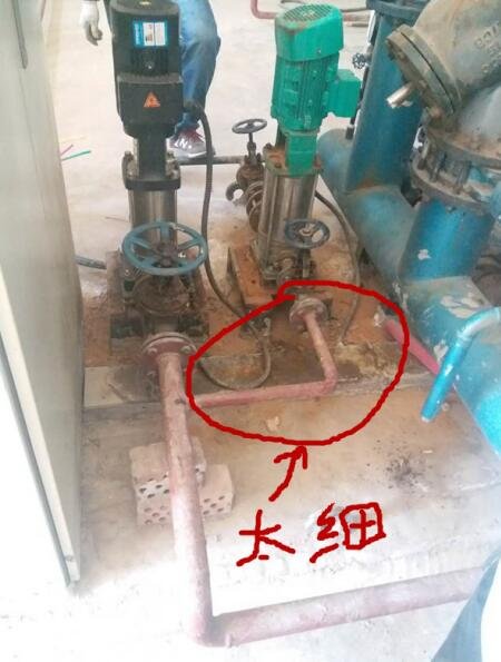 維修后的補水泵安裝在備用泵位置,通過打壓試運行效果不佳,無法達到正常壓力條件。經過詳細詢問熱力站運行人員了解到,之前此位置備用泵同樣出力不夠,無法滿足壓力需求。通過查找原因,補水泵入口閥門卡流量,威樂泵廠家到現場查看后指出泵入口管路太細無法達到水泵流量要求。