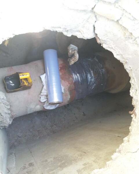 今年冬季3月份天驕清美路口我公司供熱管線出現漏點,由于漏點位置位于十字路口,地下環(huán)境非常復雜,漏點處于熱網末端對熱用戶影響較小。距停暖不到半月時間,出于安全起見暫不進行挖掘修復。停暖后為不影響交通道路行駛檢修部門及時對此處之前圍擋障礙物進行拆除,同時對路面環(huán)境進行恢復。等待維修時統一安裝固定圍擋。