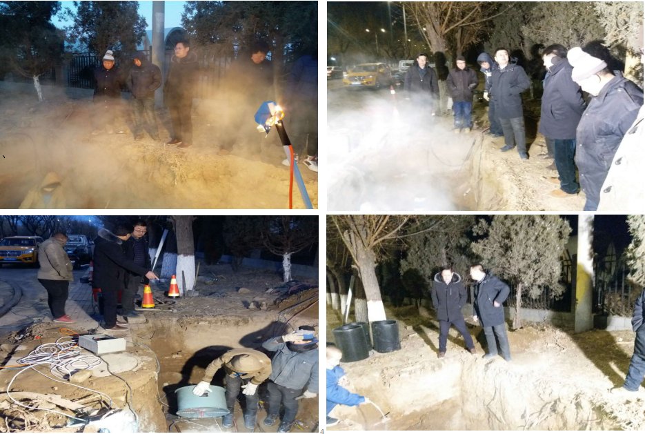 1月8日早7點,稀土站高保國報幸福南路和沃土陽光路口X45井附近有熱蒸汽懷疑我公司管線漏水。劉總、胡總帶隊相關部門立即展開搶修工作。經過10多個小時的搶修將漏點(最右圖)重新焊接完畢。
